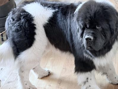 Waylon is our awesome Landseer who joined our newfie family from Russia. He is amazing and has such a sweet gentle newfie personality. He plays well with all and is eager to greet everyone.